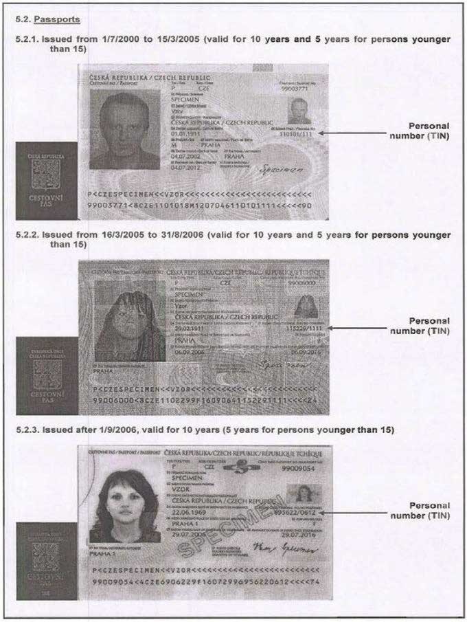 捷克使用类似纳税人识别号(TIN)的“个人识别码”(Personal Number)识别其纳税人,该号码载于官方颁发的身份证明文件上。