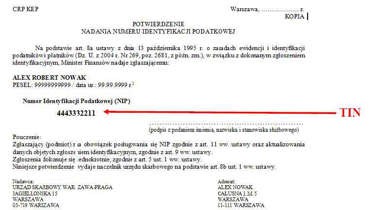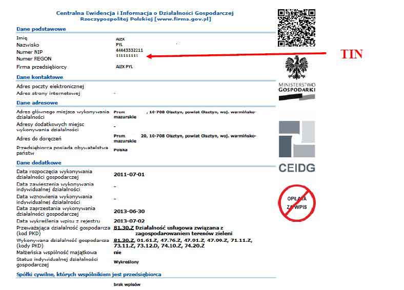 更多有关纳税人识别号的信息参见:www.archbip.mf.gov.pl